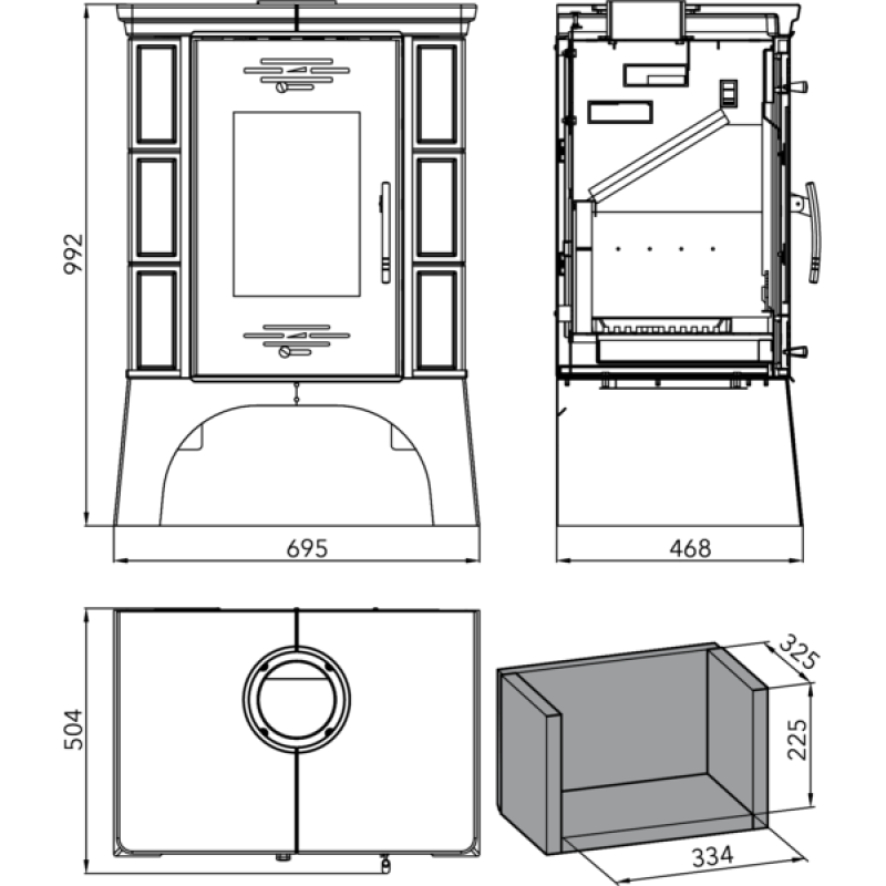 Výkon lze regulovat v rozpětí 2,6 – 8,4 kW a kamny můžete vytápět prostor až 144 m3. Napojení na kouřovod je možné zeshora i zezadu.