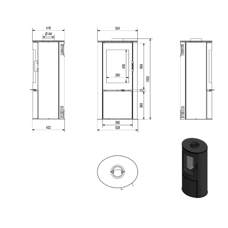 • Průměr kouřovodu    150mm