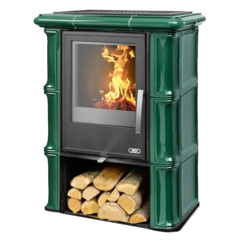 Kachlová Krbová kamna ABX Sicilia černý korpus, opláštění kachle flaschengrün