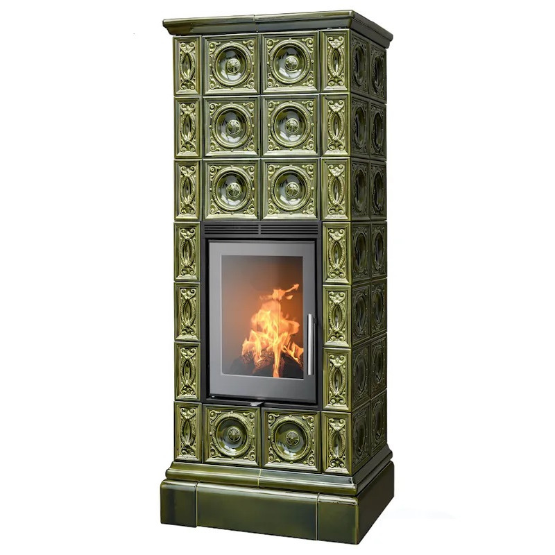 Kachlová Krbová kamna ABX Venezia exklusive XL, černý korpus, opláštění kachle zelená