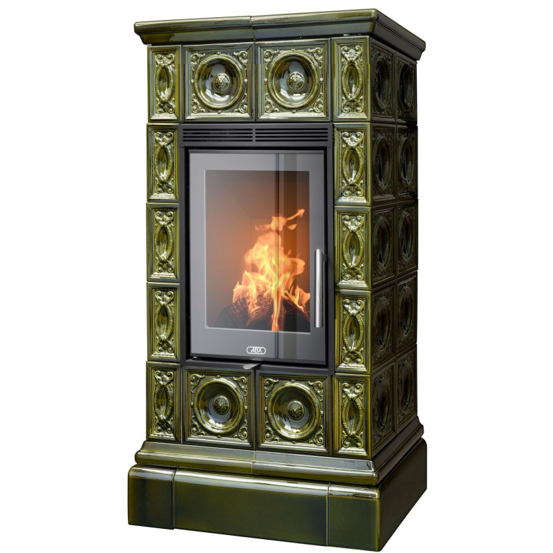 Kachlová Krbová kamna ABX Venezia exklusive černý korpus, opláštění kachle zelená