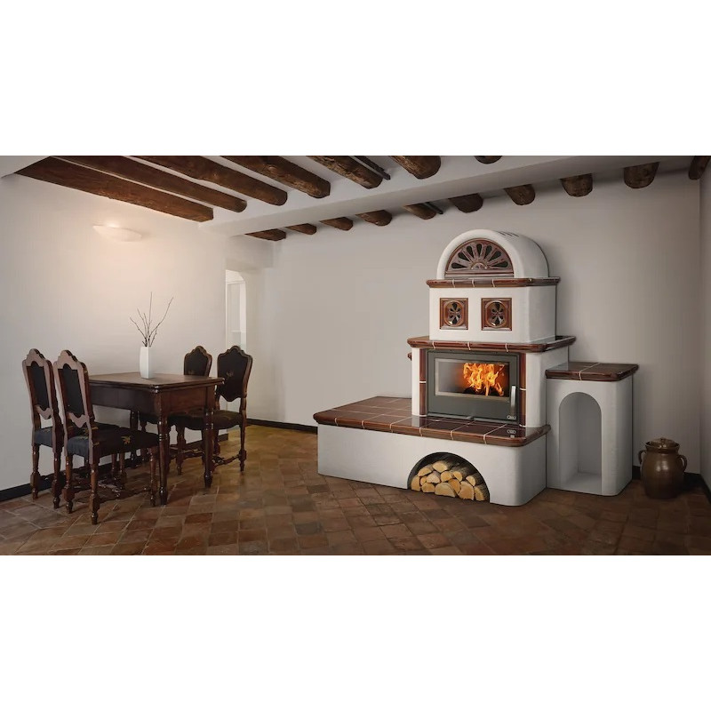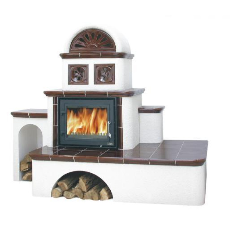 Kachlová pec ABX OXFORD 15 kW, hnědá levá, TV výměník 7 kW