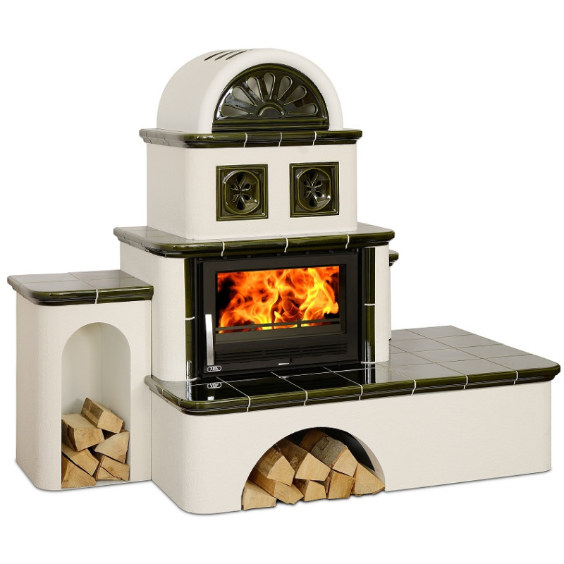 Kachlová kamna - Kachlová pec ABX Oxford, černý korpus, opláštění kachle zelená - levé provedení
