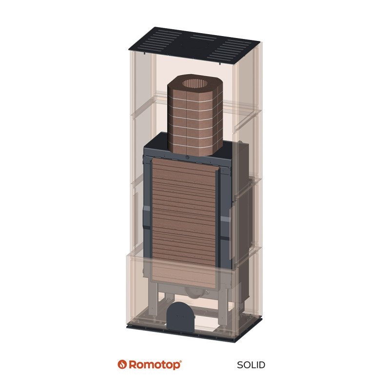 Sálavé vytápění ve vyváženém poměru s prouděním teplého vzduchu jsou splněným cílem konstruktérů kachlových krbů SOLID. Tento výrobek charakterizují čisté linie, precizní řemeslné zpracování a ručně vyráběné keramické velkoformátové kachle.