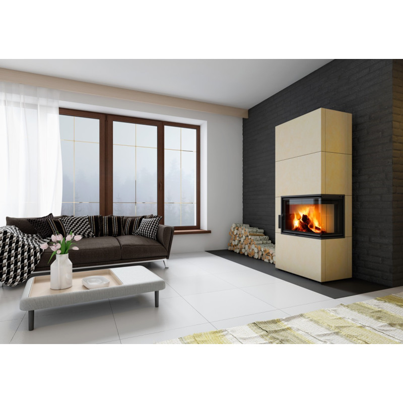 Keramický obklad je na všech čtyřech stranách. V nabídce jsou tři typy kachlových krbů, a to s rovným topeništěm nebo s rohovým levým a pravým. Spalovací komora je vyložena šamotovými tvarovkami, ve standardním provedení s roštem s možností změny na variantu bez roštu. Inovativní systém vedení spalin DOUBLE SPIN zvyšuje celkovou účinnost krbu. Výstup spalin je standardně možný horním nebo zadním odvodem (nutno vybrat již při objednání). Díky sekundárnímu přívodu vzduchu na vnitřní plochu skla dvířek se účinně zabraňuje usazování nečistot. Čistému pohledu na oheň tak nic nebrání. Regulace primárního a sekundárního přívodu vzduchu se řídí jediným ovládacím prvkem.