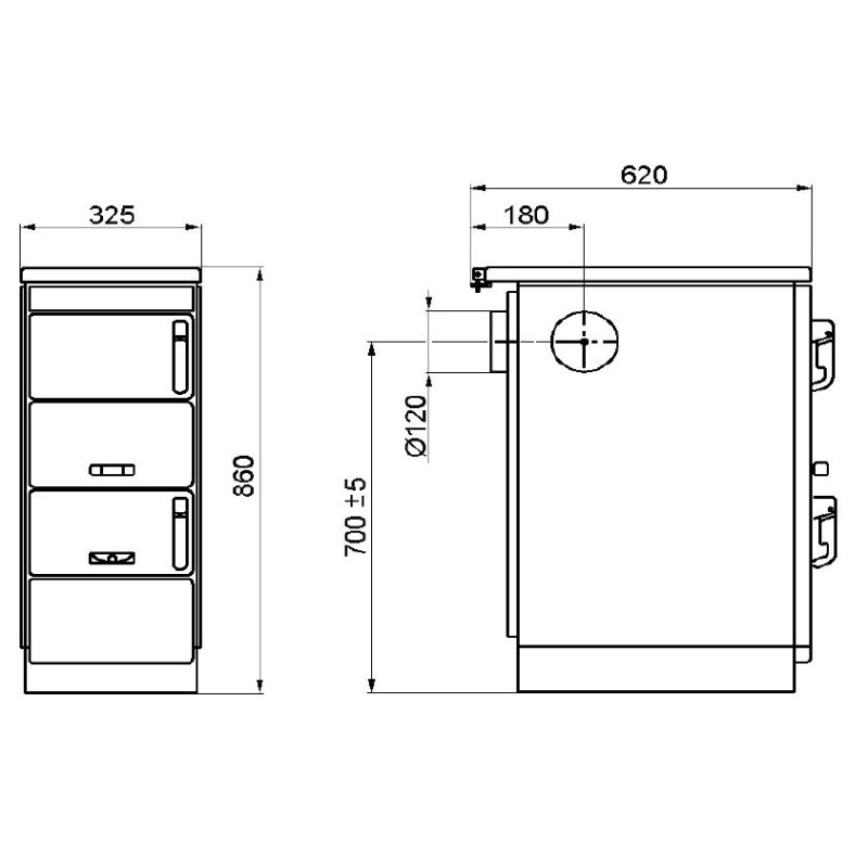 - rozměr sporáku š 325 x v 860 x h 620 mm