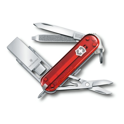Člověk digitálního věku potřebuje kapesní nůž, který mu bude dělat společníka při každodenních nesnadných úkolech doma, v kanceláři nebo na cestách. Proto je tady Victorinox@work, který kromě otevírání dopisů a odstraňování připínáčků umí se svými 32 GB uchovávat hudbu, obrázky, prezentace i elektronickou poštu. Baleno v blistru