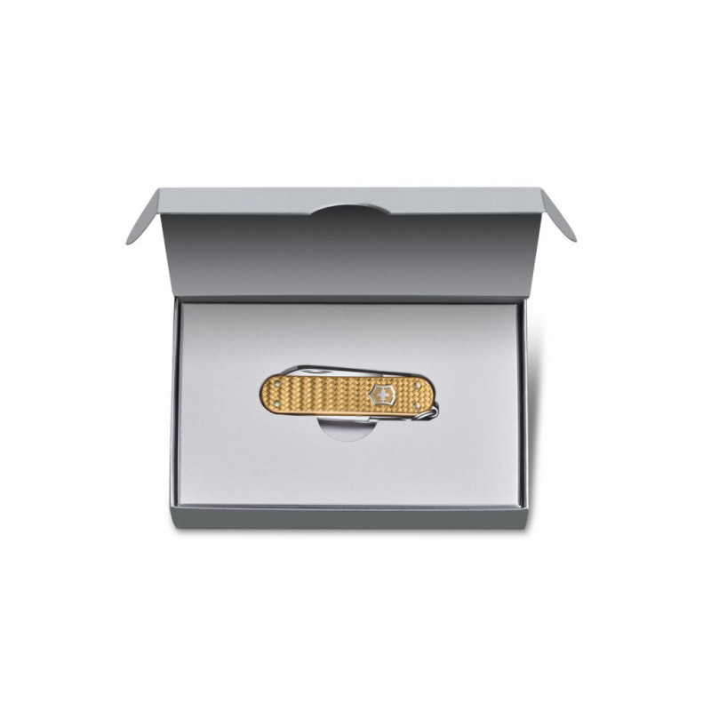 Vylepšená, rafinovaná a nově pojatá kolekce Classic Precious Alox s nevšedním tkaným vzorem aloxových střenek v pěti elegantních a výrazných barvách. Tato kolekce představuje sebevědomý styl a charisma. Je to řada pro ty, kteří určují trendy, mají jasný názor a jsou velkými snílky toužícími po dokonalé kvalitě, jež zároveň posouvá hranice. Na dotek příjemné, lesklé střenky v sobě skrývají pět praktických funkcí, takže každý nůž je stejně užitečný jako atraktivní. V návaznosti na náš stále oblíbenější model kapesního nože Classic se jedná o kolekci, která s lehkostí spojuje výjimečnou funkčnost a design.