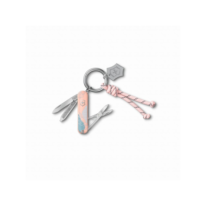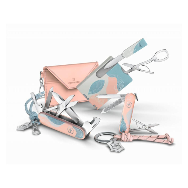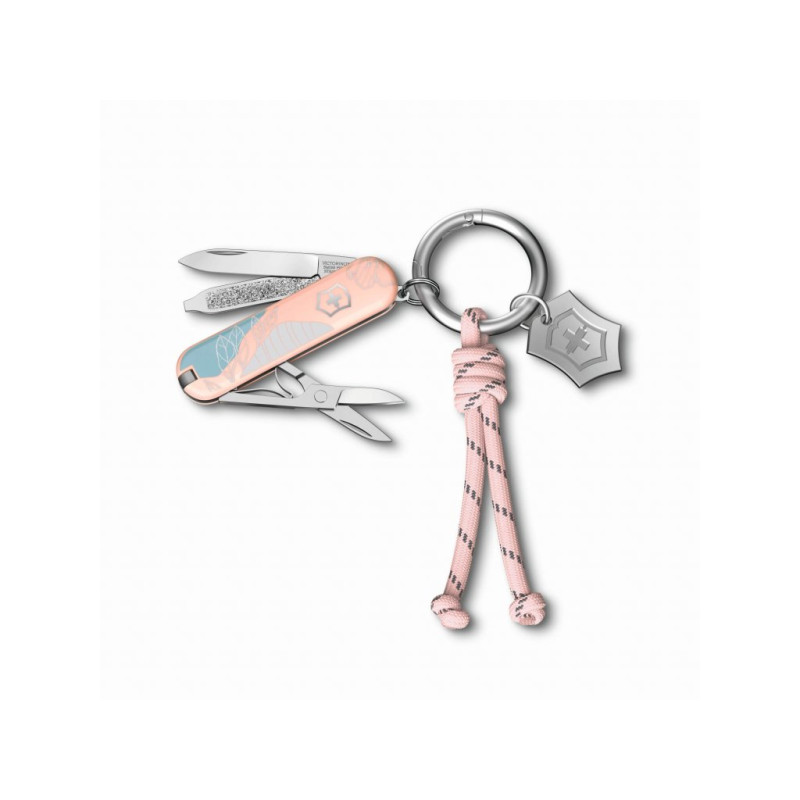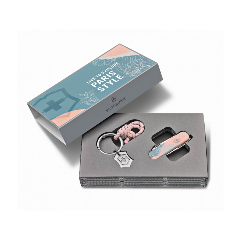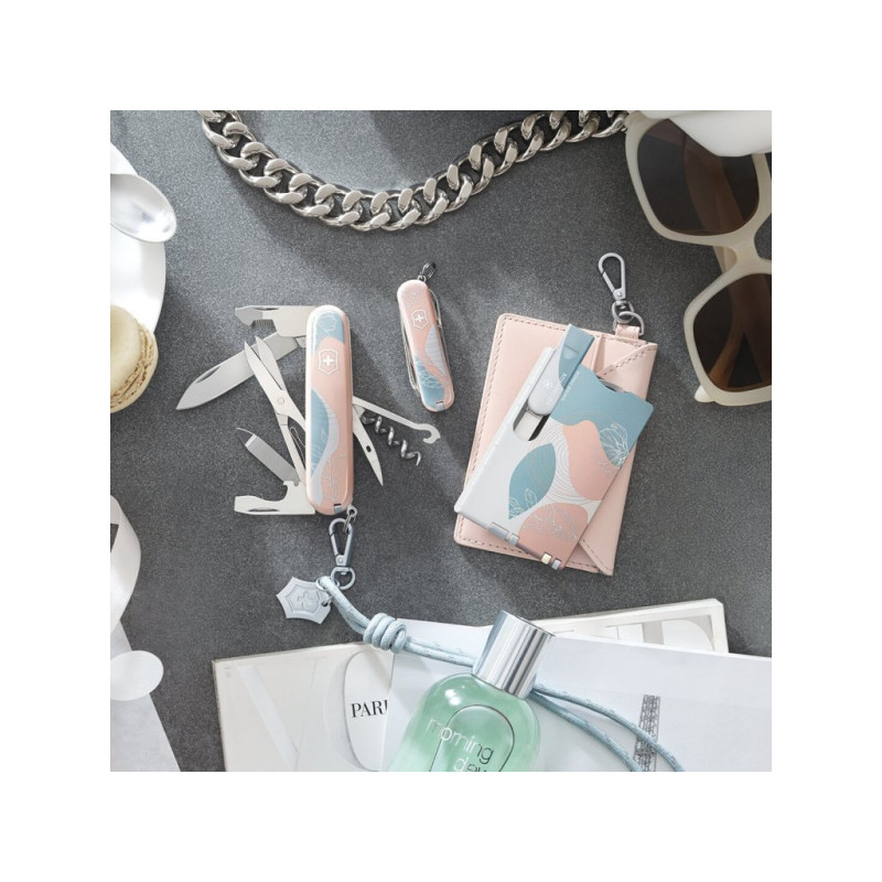 Malý kapesní nůž Sydney Style z kolekce Live to Explore spojuje křehkou ženskost a kompaktní funkčnost. Nůž je doplněn kroužkem na klíče ozdobeným stylovým uzlem s přívěškem ve tvaru loga s typickým švýcarským křížem, vše společně uloženo v elegantní dárkové krabičce. Nůž samotný je vybaven 5 praktickými funkcemi: