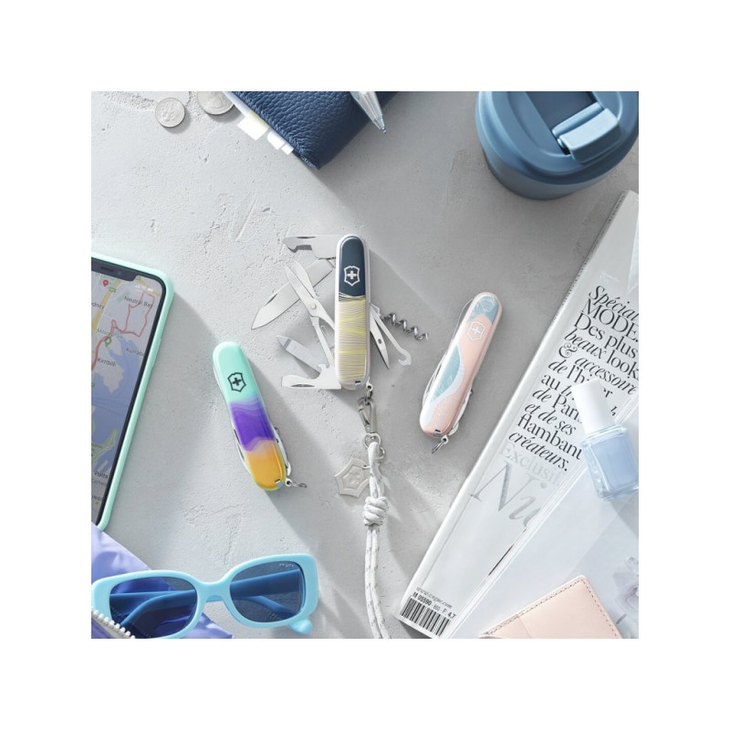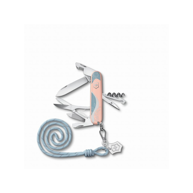 Kapesní nůž Paris Style z kolekce Live to Explore spojuje křehkou ženskost a kompaktní funkčnost. Nůž je doplněn šňůrkou na krk s karabinkou a přívěškem ve tvaru loga s typickým švýcarským křížem, vše společně uloženo v elegantní dárkové krabičce. Nůž samotný je vybaven 16 praktickými funkcemi, včetně nové inovativní funkce pro snadné a bezpečné otevírání krabic: