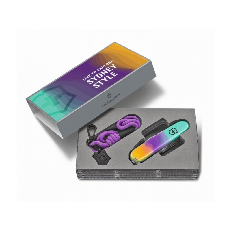 Kapesní nůž Paris Style z kolekce Live to Explore spojuje křehkou ženskost a kompaktní funkčnost. Nůž je doplněn šňůrkou na krk s karabinkou a přívěškem ve tvaru loga s typickým švýcarským křížem, vše společně uloženo v elegantní dárkové krabičce. Nůž samotný je vybaven 16 praktickými funkcemi, včetně nové inovativní funkce pro snadné a bezpečné otevírání krabic: