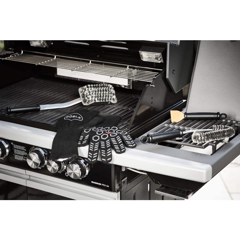 Robustní kartáč na čištění grilovacích roštů a grilovacích desek všech druhů si hravě poradí se všemi připálenými usazeninami. 3 řady štětin se postarají o velmi účinné, ale zato šetrné odstranění nečistot. Bezpečnou a příjemnou manipulaci při čištění zajišťuje odolná rukojeť z nerezu o délce 47 cm a plastový konec rukojeti. Samotný kartáč s nerezovými štětinami je vyměnitelný.