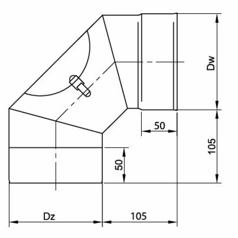 - slouží k připojení krbové vložky do komínu pod předem daným úhlem 45° nebo 90°