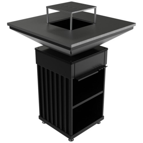 Vybaveno ocelovým roštem, praktickými úložnými přihrádkami na nádobí a koření s praktickou / prostornou dřevěnou dutinkou. Ohniště QUADRUM bbq není jen moderní zahradní gril, ale také plně vybavená venkovní kuchyň. Bude také perfektní jako zahradní ohniště s grilem - efektivní zdroj tepla za chladných večerů, stejně jako stylový a přirozený způsob osvětlení zahrady.