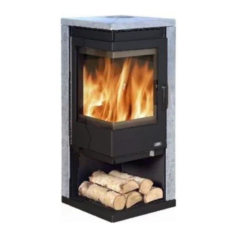 - Kamenné sloupky a masivní horní deska dělají tyto kamna výjimečné.