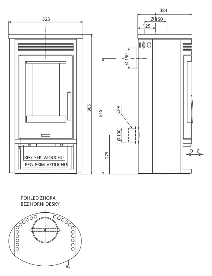 - Možnost využití horního a zadního vývodu pro kouřovod.