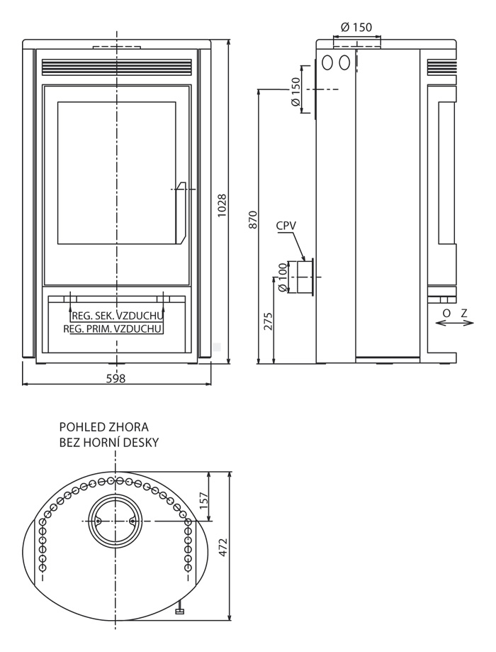 - Možnost využití horního a zadního vývodu pro kouřovod.