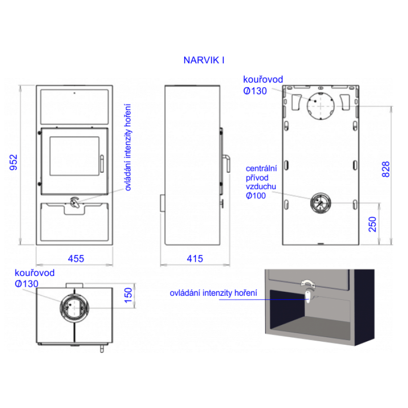 Dvouplášťová teplovzdušná (konvekční) kamna.