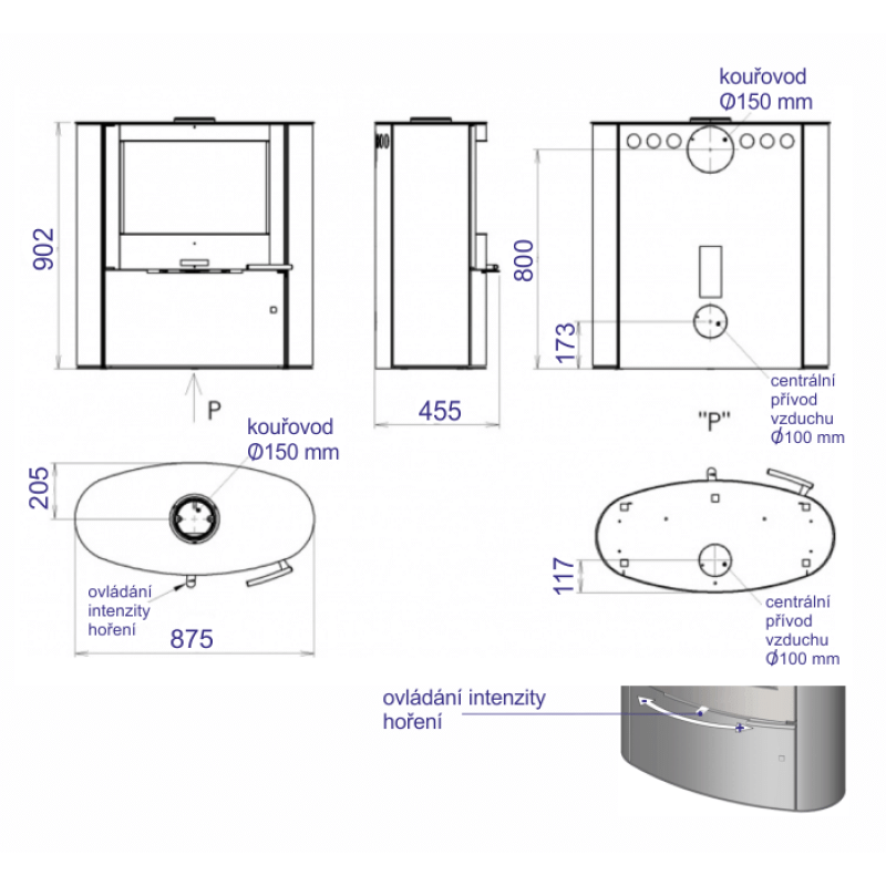 • vývod kouřovodu přestavitelný horní nebo zadní