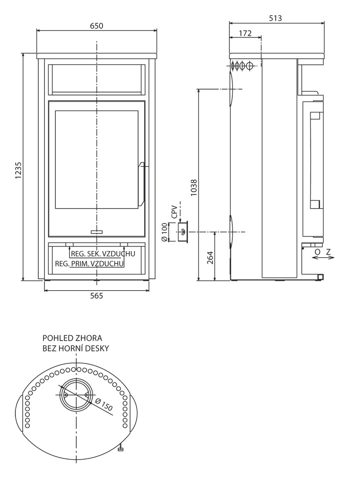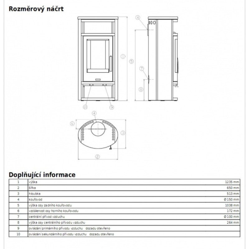 Krbová kamna Polar 8 černý plech, pícka mastek