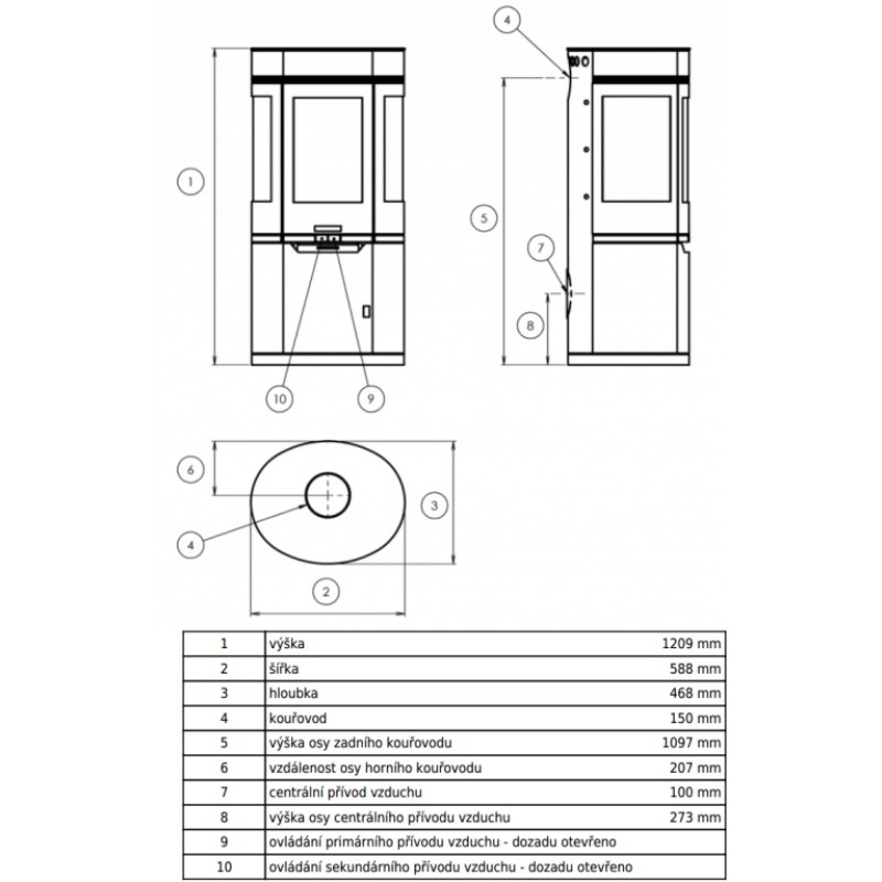 Dvouplášťová teplovzdušná (konvekční) kamna.