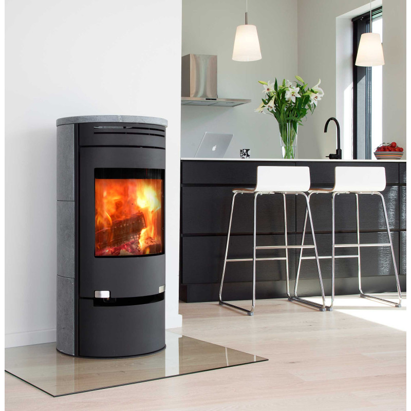 Krbová kamna Aduro 1.1SK v černé barvě jsou kamna v obkladu z finského mastku, umístěného na obou bocích kamen i jako horní deska. Mastek je unikátní přírodní materiál – kámen, mající jako hlavní vlastnost schopnost absorbovat teplo, které po vyhasnutí kamen po dlouhou dobu uvolňuje. Moderní konvekční krbová kamna Aduro 1.1SK jsou charakteristická svou čistou linií a nadčasovým vzhledem, klička i ostatní ovládací prvky jsou součástí pláště kamen. Kruhová konstrukce a zakulacené sklo dvířek těchto kamen Vám umožňuje si dokonale vychutnat pohled na plápolající oheň ve spalovací komoře ze všech úhlů.