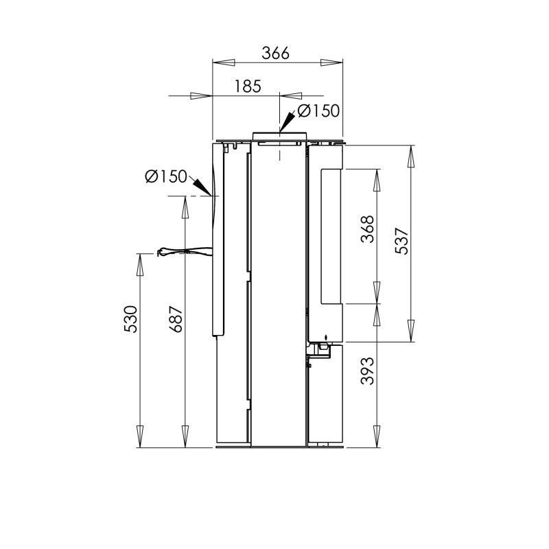 | Průměr kouřovodu (mm) | 150 |