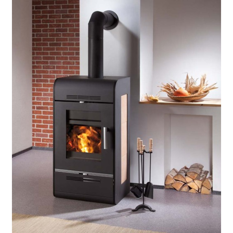 Krbová kamna Andrus s výměníkem jsou k dostání ve dvou barevných variantách. Černý korpus s béžovou dlažbou nebo antracitový korpus decentně doplněný šedou dlažbou.