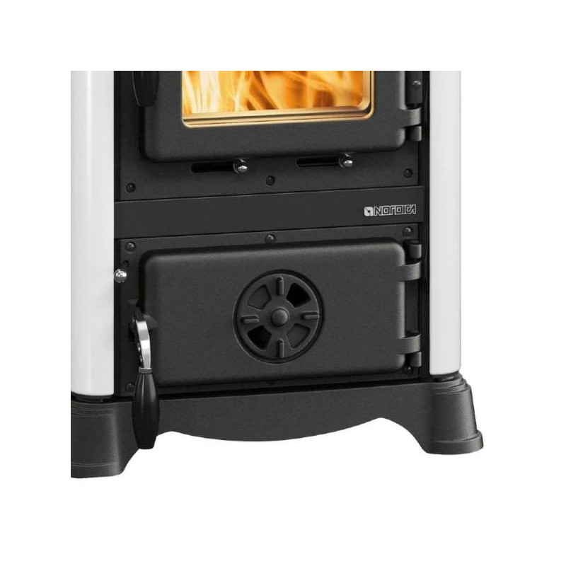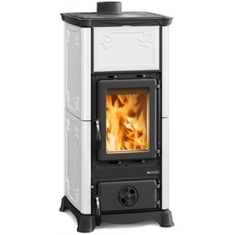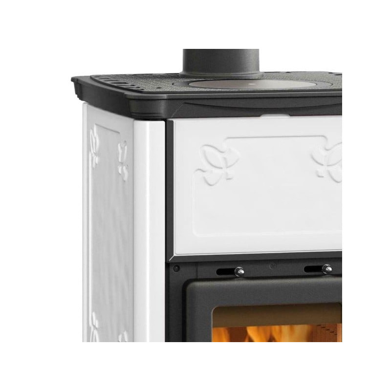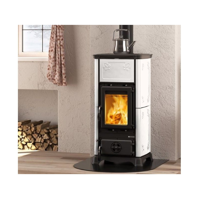 Krbová kamna Nordica Emiliana s bílým kachlovým obkladem a varnou plotnou