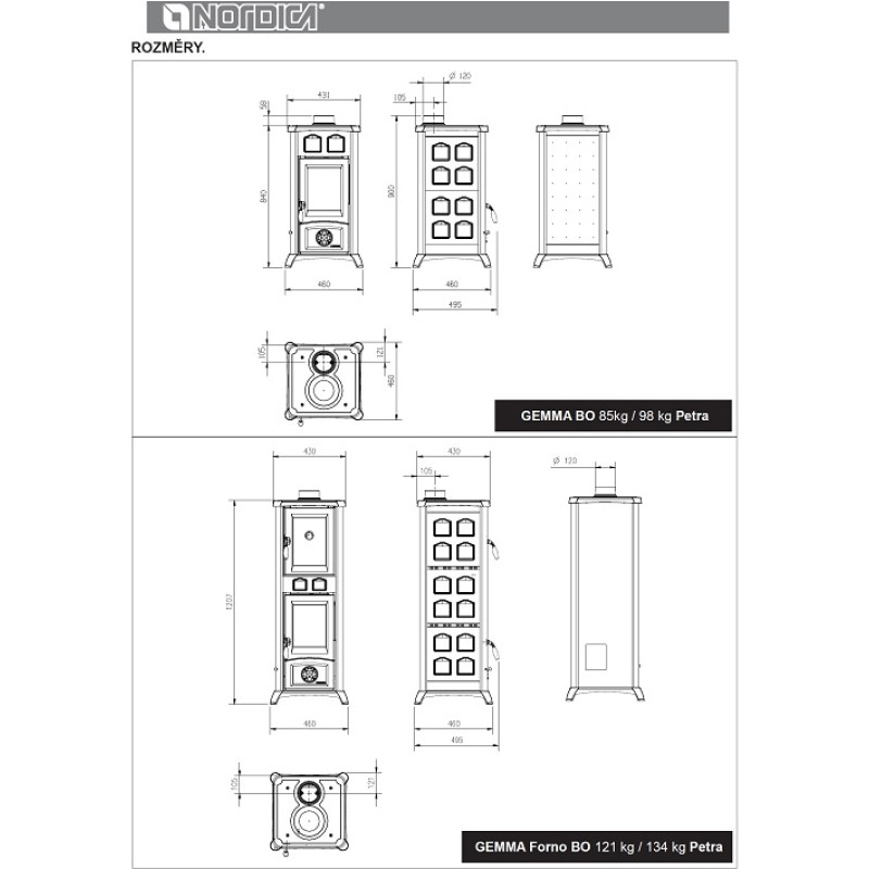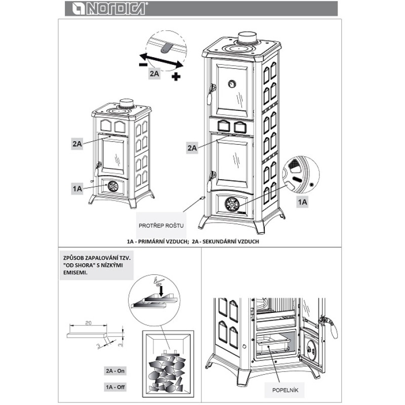 Vzdálenost od hořlavých materiálů za kamny: 200 mm