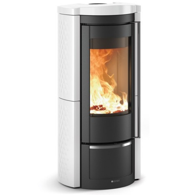 Vertikální topeniště umožňuje přikládání i větších polen. Velké prosklení zaručuje fantastický pohled na hru plamenů v průběhu hoření paliva v topeništi. Kamna mají litinovou přírubu s možností napojení na externí přívod vzduchu. Tím je možné zamezit čerpání vzduchu z interiéru. Jejich kulatý tvar je vhodný k instalaci ke stěně i do rohu. Ve spodní části pod topeništěm je snadno odnímatelný popelník. Ergonomické chromované madlo usnadní přikládání paliva.