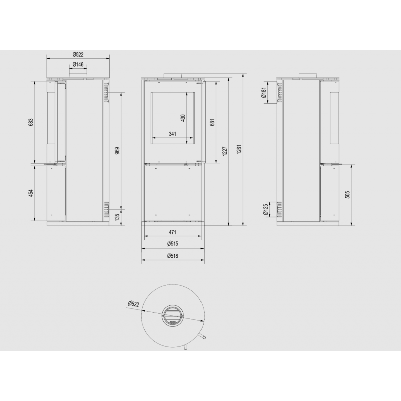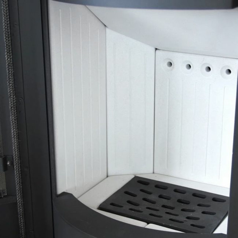 Externí vzduch je přiváděn do vložky vestavěným průduchem, který se nachazí ve spodní části kamen. Kamna jsou vybavena popelníkem. Vývod kouřovodu je možné si zvolit (horní a zadní) - pro zpětnou montáž výstupní otvor nákupu horní desky krytu je nutné.
