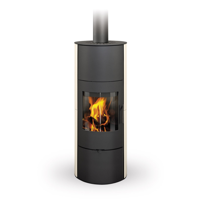 Štíhlá vysoká akumulační kamna EVORA AKUM s oblíbenou oválnou základnou a s vysokou schopností sálat dodatečné teplo.