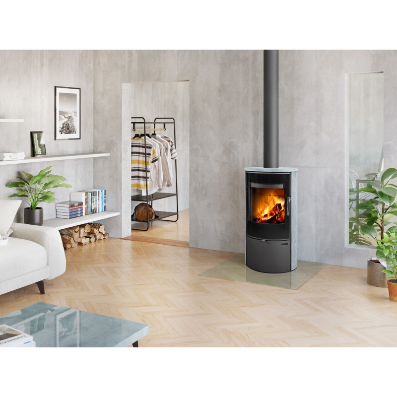 Sklo po celé ploše dvířek v kombinaci s nerezovým povrchem detailů dává krbovým kamnům LAREDO punc přitažlivosti a jedinečnosti.