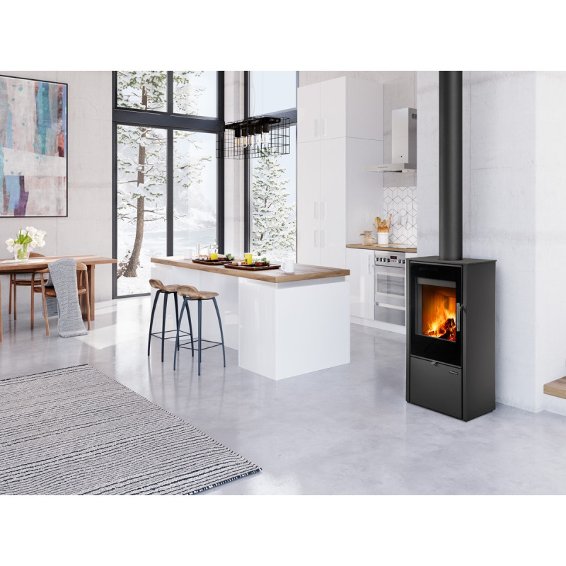 Krbová kamna jsou vhodná pro nízkoenergetické domy. Dvířka kamen mají designově potištěné velkoplošné prosklení. Disponují systémem CPV – centrální přívod externího vzduchu. Ve standardu je možné zapojení horního nebo zadního odvodu spalin. Díky sekundárnímu přívodu vzduchu je sklo dvířek omýváno, a tak nedochází k usazování nečistot. Spalovací komora je vyložena šamotovými tvarovkami. Regulaci primárního a sekundárního přívodu vzduchu lze řídit jediným ovládacím prvkem. Ve spodní části kamen je uzavíratelný dřevník, který umožnuje uskladnění menší zásoby dřeva nebo krbového nářadí. Design umocňují leštěné nerezové ovládací prvky a celoskleněná dvířka kamen.
