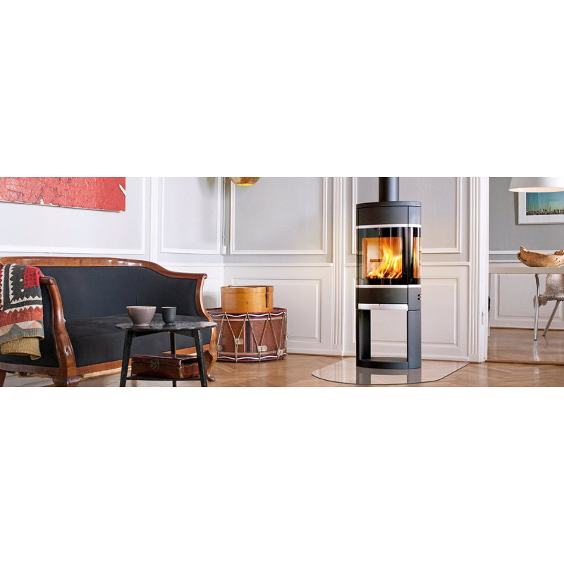 • Kamna stoji na otevřeném podstavci, ke kterému lze dokoupit dvířka v černém laku
