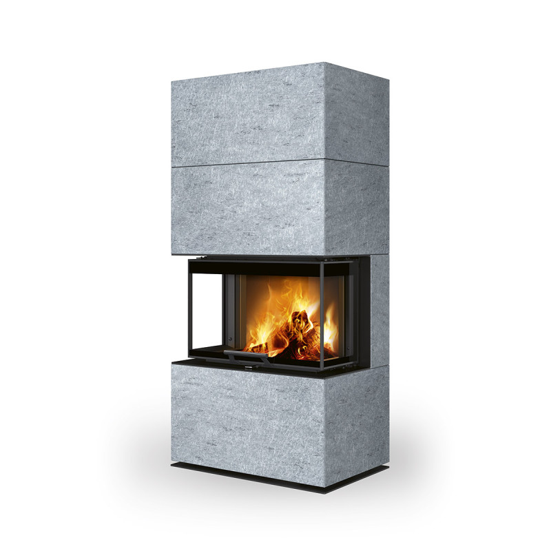 V nabídce najdete varianty obložené velkoplošným přírodním kamenem nebo designovým povrchově upraveným plechem. Díky speciálnímu odstínění zadního pláště lze tyto krby umístit přímo ke stěně, což šetří drahocenný prostor.