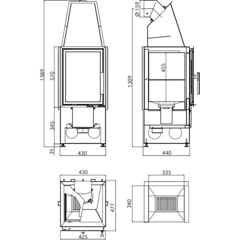 Štíhlá krbová vložka Malvik IV (šířka jen 430 mm) se hodí všude tam, kde není místa nazbyt. Pro připojení můžete zvolit jak zadní, tak vrchní vývod kouřovodu. Uvnitř najdete bytelný litinový rošt a kvalitní šamotovou vyzdívku.