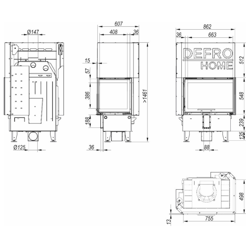 krbová vložka s levým rohovým prosklením a výsuvnými dvířky