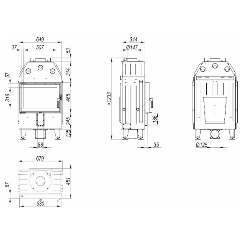 • systém trubkových průduchů – průduchy navyšují efektivitu krbové vložky