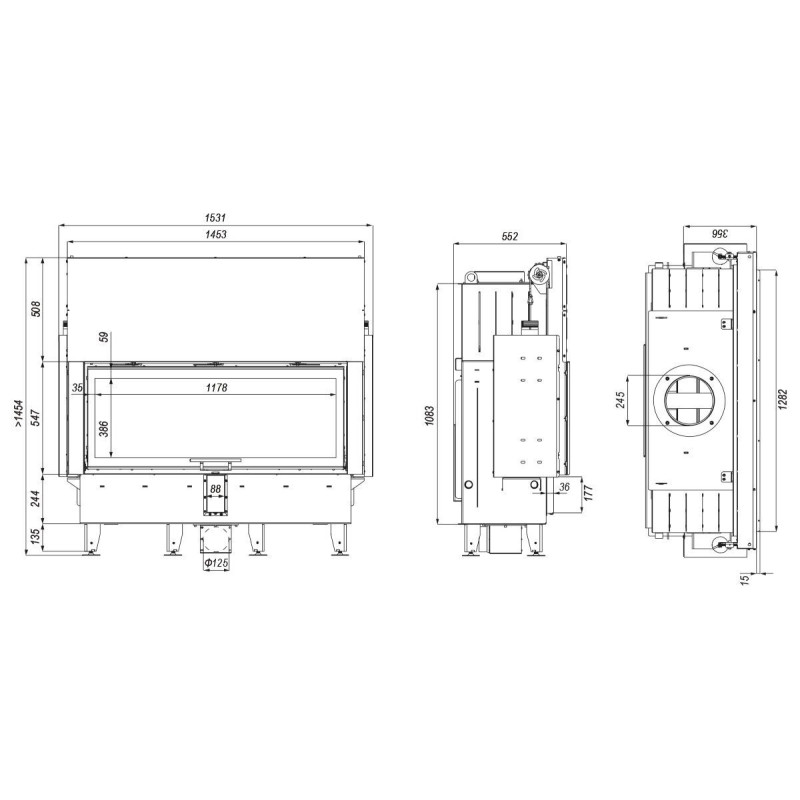 Krbová vložka s rovným čelním prosklením a výsuvnými dvířky
