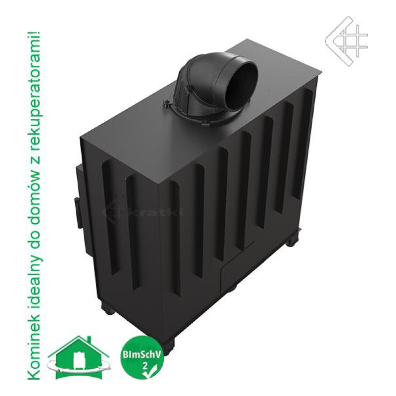 Krbová vložka KRATKI je vyrobena z kotlového plechu tl. 4 mm a vyložena speciální akumulační vystýlkou ACUMOTTE. Díky počítači řízeným CNC strojům a robotickým svářečkám jsou ocelové díly i celková úprava naprosto přesné. Vložka má dvojité spalování a centrální regulaci. Regulace vzduchu se řídí šoupátkem - při otevření do 50% je vzduch přiváděn do horní části topeniště, kde nastává dopalování plynů, a také na sklo (oplach skla). při pozizi 50 - 100% je přiváděn také rovnou pod rošt. Vložka má přívod vzduchu z exteriéru.