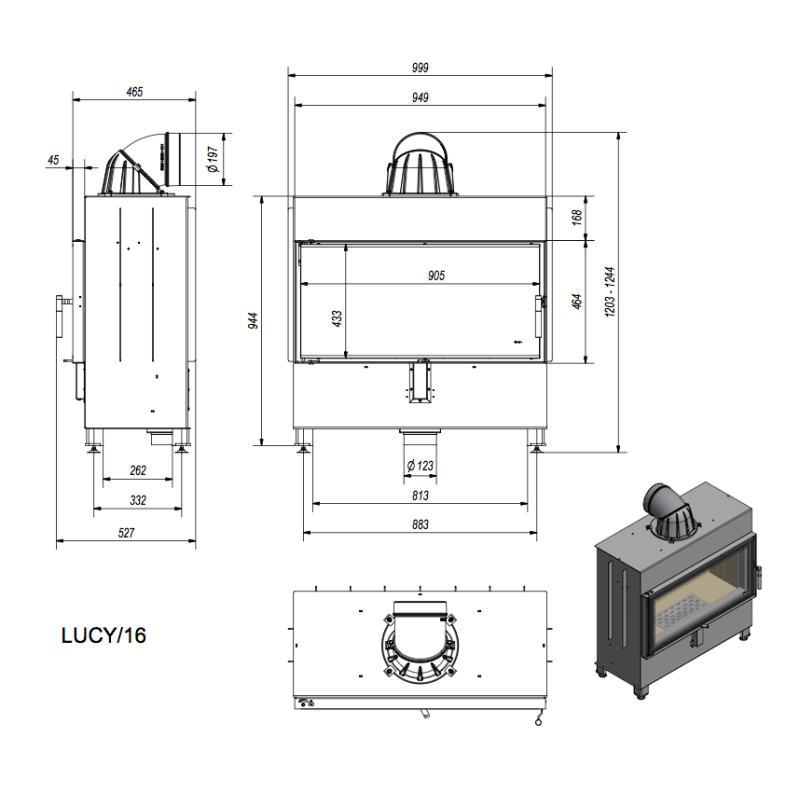 Součástí vložky jsou také aretační nožky (40 mm), rošt a prostorný popelník.