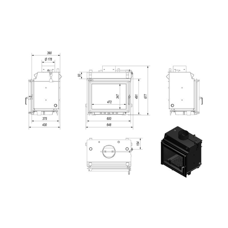 Teplovodní krbová vložka s výměníkem a chladící smyčkou