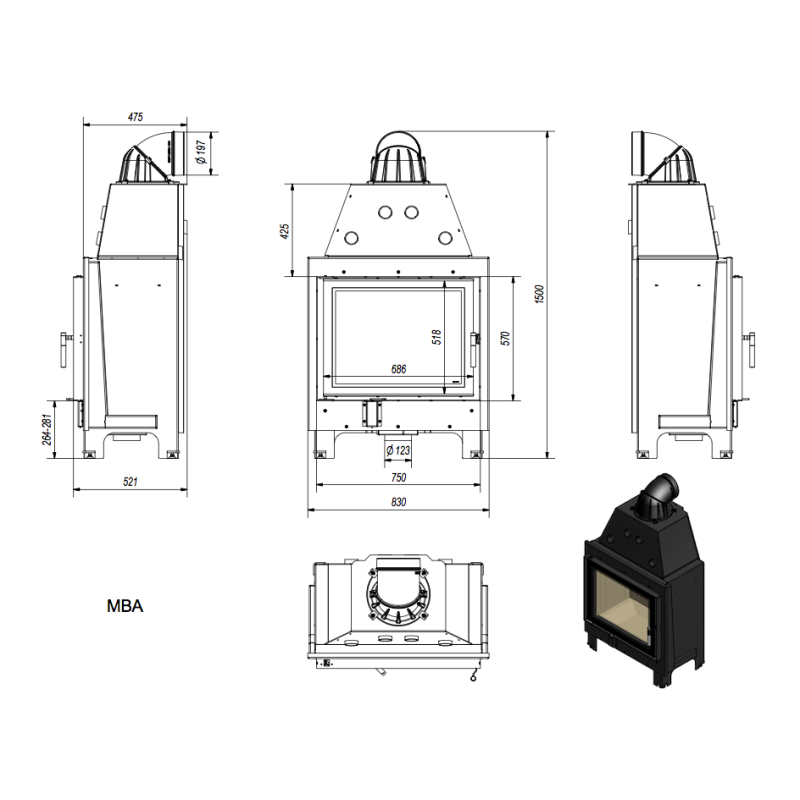 Krbová vložka MBA 17kW rovná