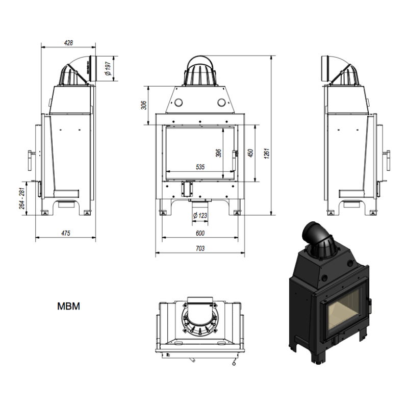 Krbová vložka MBM 10kW rovná
