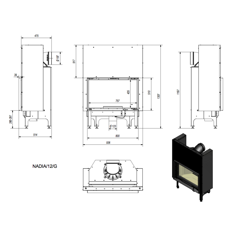 • Rozměry topeniště VxŠxH       471x694x306mm