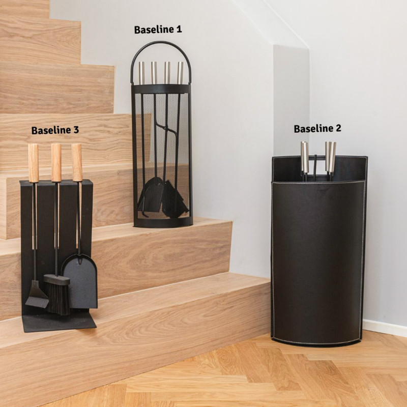 Vytápění dřevem je o pohodě, teplu a také o stylu. Krbové nářadí by nemělo být jen funkční, ale i estetické. Krbové nářadí Aduro BASELINE je esencí dánského designu: minimalistické, praktické a neuvěřitelně elegantní. Je ideální volbou pro ty, kteří milují čisté linie a chtějí mít krbové příslušenství diskrétně, ale stylově uložené. 4-dílná souprava nářadí ke krbu v černé barvě s nerezovými madly, stojan potažený černou umělou kůži s bílým prošíváním po obvodu.