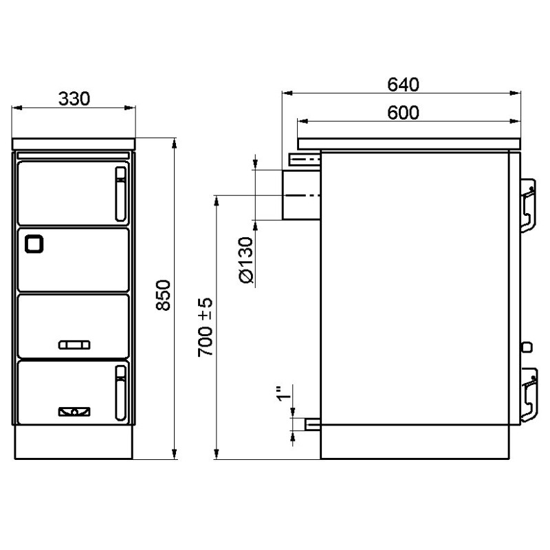Varný spotřebič KVS MORAVIA typ 9106 je vybaven vývodem kouřových zplodin pro napojení na komín pouze ze zadní stěny.