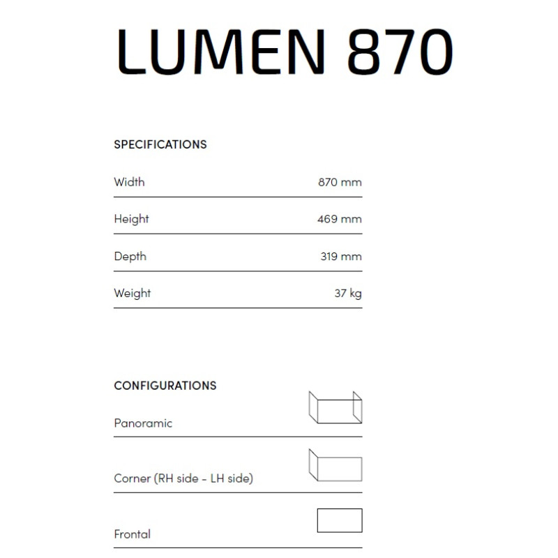 LUMEN 870 s obkladem je nejkompaktnější a nejflexibilnější model z prémiové řady elektrických krbů od renomovaného italského výrobce La Nordica-Extraflame. Představuje dokonalé řešení, jak vnést do Vašeho domova, kanceláře nebo bytu autentickou atmosféru ohně – bez starostí s komínem, dřevem a popelem. Ultra realistický plamen a design bez kompromisů.